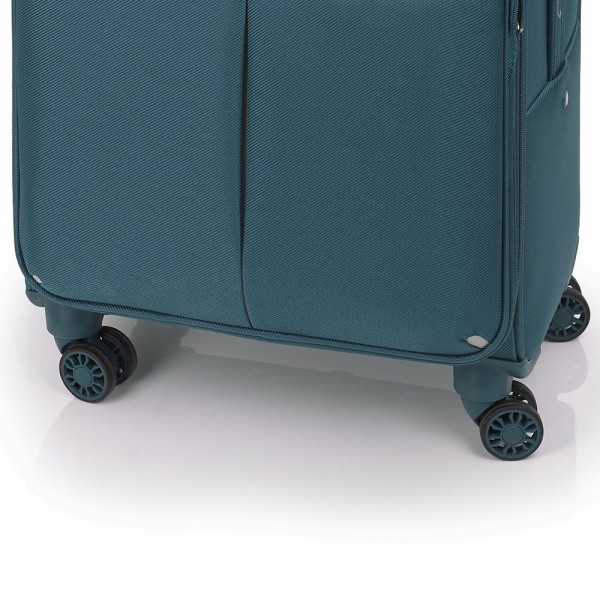 Валіза оснащена чотирма спареними роликовими колесами із високотемпературного термопластичного поліуретану (TPU). Матеріал має міцність порівнянну з пластиком, гнучкістю силікону, а також має підвищену стійкість до перепадів температур. Відмінною особливістю коліс із TPU матеріалу є зниження шуму до мінімуму при коченні валізи по нерівній поверхні. Завдяки стійкості до стирання матеріал коліс відрізняється тривалим терміном експлуатації.