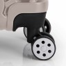 Модель оснащена чотирма повноповоротними спареними колесами з можливістю незалежного розвороту кожного колеса на 360 °. Системою передбачено рівномірний перерозподіл навантаження на кожне колесо, що у свою чергу сприяє плавному коченню та маневреності валізи, докладаючи при цьому мінімум зусиль.