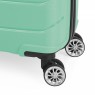 Валіза оснащена чотирма повноповоротними спареними колесами з можливістю незалежного розвороту кожного колеса на 360°. Системою передбачено рівномірний перерозподіл навантаження на кожне колесо, що у свою чергу сприяє плавному коченню та маневреності валізи, докладаючи при цьому мінімум зусиль. Колеса виготовлені із високотемпературного термопластичного поліуретану (TPU). Матеріал має міцність порівнянну з пластиком, гнучкістю силікону, а також має підвищену стійкість до перепадів температур. Відмінною особливістю коліс із TPU матеріалу є зниження шуму до мінімуму при коченні валізи по нерівній поверхні. Завдяки стійкості до стирання матеріал коліс відрізняється тривалим терміном експлуатації.