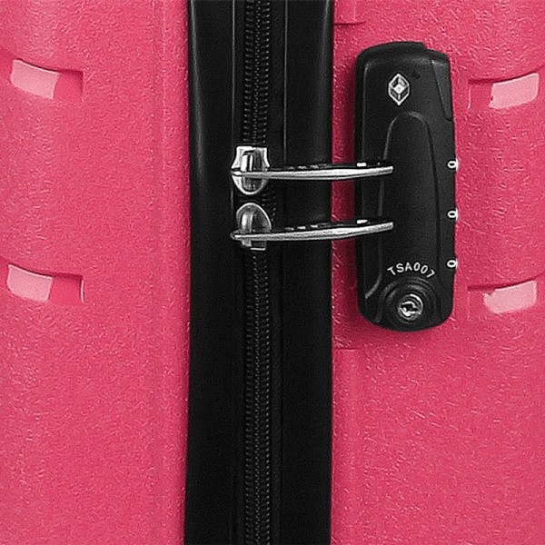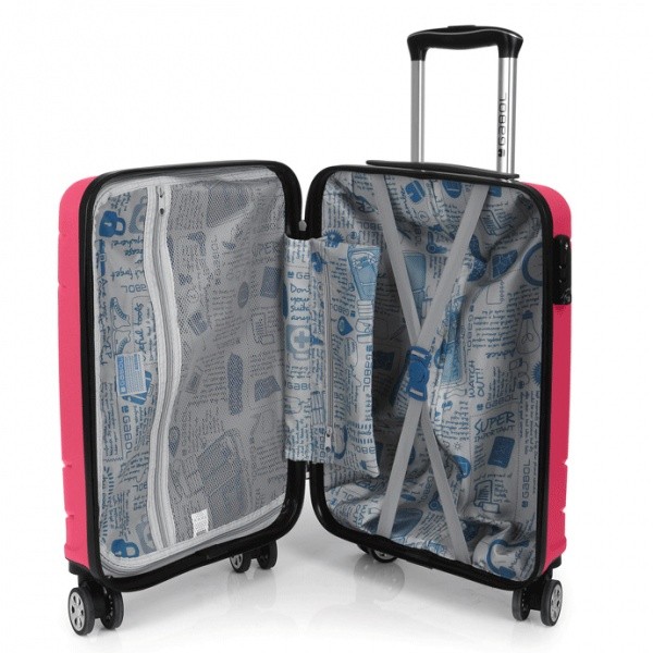 Колекція валіз Gabol Shibuya виконана з міцного і довговічного матеріалу - поліпропілену, що дуже важливо для валіз, що перевозяться в багажних відділеннях. Внутрішній об'єм розділений перегородкою на два відділення та має ремені для фіксації речей усередині. Валіза обладнана фірмовим кодовим замком із функцією митного огляду TSA. Валіза легка, маневрена і зручна для транспортування.