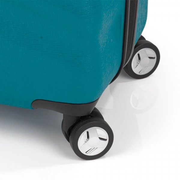 Валіза оснащена чотирма повноповоротними спареними колесами з можливістю незалежного розвороту кожного колеса на 360°. Системою передбачено рівномірний перерозподіл навантаження на кожне колесо, що у свою чергу сприяє плавному коченню та маневреності валізи, докладаючи при цьому мінімум зусиль.