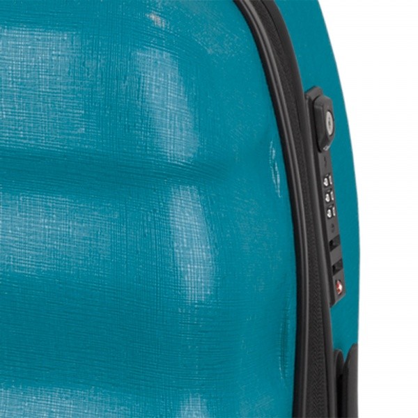 Внутрішній об'єм валізи має ремені для фіксації речей та сітчасту кишеню на блискавці. Модель оснащена кодовим замком системи TSA для підвищення безпеки. Валіза виглядає стильно, конструкція досить легка та зручна в експлуатації.