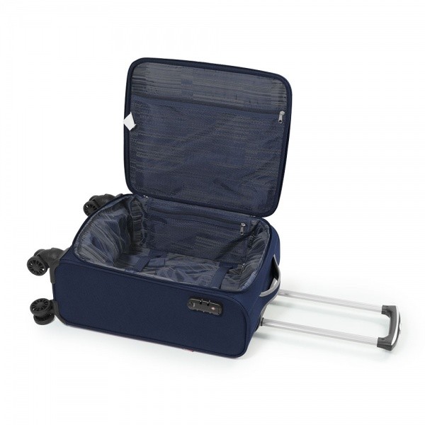 Валіза Gabol серії Zambia оснащена кодовим замком системи TSA для підвищення безпеки. Каркас дна легкий та міцний завдяки стільниковій структурі будівлі. На фасадній частині розміщені місткі кишені на блискавці. Внутрішній об'єм має ремені для фіксації речей усередині. Валіза легка, маневрена і зручна для транспортування.