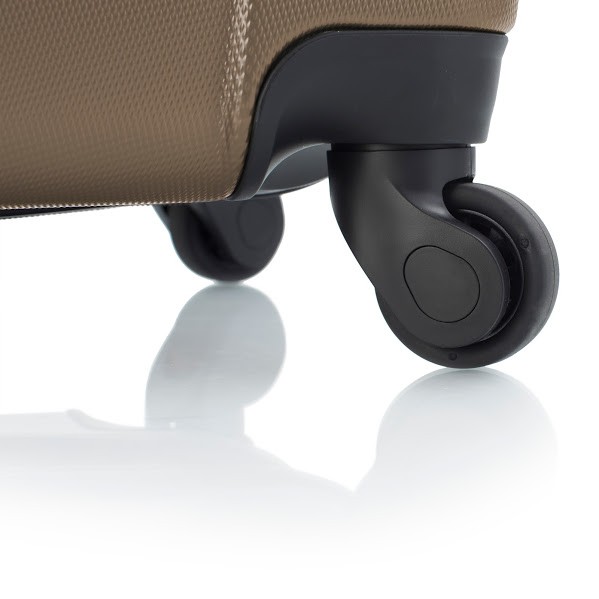Валіза оснащена чотирма повноповоротними колесами Spinner (зроблені в Японії), з можливістю незалежного розвороту кожного колеса на 360°. Системою передбачено рівномірний перерозподіл навантаження на кожне колесо, що у свою чергу сприяє плавному коченню та маневреності валізи, докладаючи при цьому мінімум зусиль.