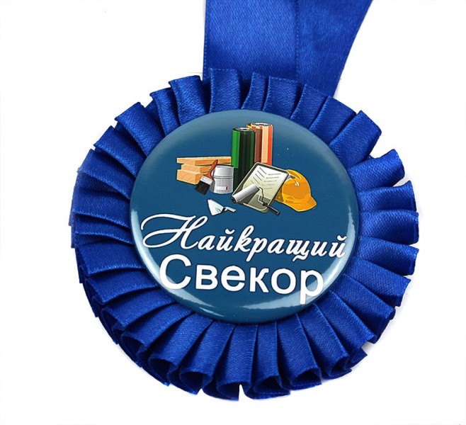 Отношения со свекром – отдельная глава любой семейной книги. Родители мужа, если присмотреться, на самом деле классные, просто нужно регулярно и горячо хвалить их, их сына и посещать семейные праздники. Свекр обязательно обрадуется, если вручить ему подарок. Если у отца вашего мужа в наличии есть чувство юмора – вам повезло. Можно организовать специально для свекра «день подарков» или «день свекра» и презентовать ему в эти дни оригинальные подарки и приколы. Какой подарок вручить свекру? О чем тут думать – отец вашего мужа, безусловно, достоин награды! В подарок свекру можно выбрать прикольную медаль «Мировой свекр» темно-голубого цвета.