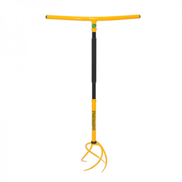 ПОРЯДОК РОБОТИ : Робочу частину інструменту встановіть на поверхню ґрунту в положенні рукояті максимально ліворуч; Легко натискаючи вниз, поверніть ручку за годинниковою стрілкою вправо до повного заглиблення зубів у ґрунт і вийміть інструмент вгору разом із землею, перешкоджаючи розвороту ручки; Повторіть рухи, попередньо посунувши інструмент у бік на 20 см; При розробці ділянок з дерном попередньо наріжте лопатою ділянки землі квадратами 25х25 см. Зірвіть квадрат вказаним вище способом, обтрусіть залишки землі, відкиньте дерн убік.