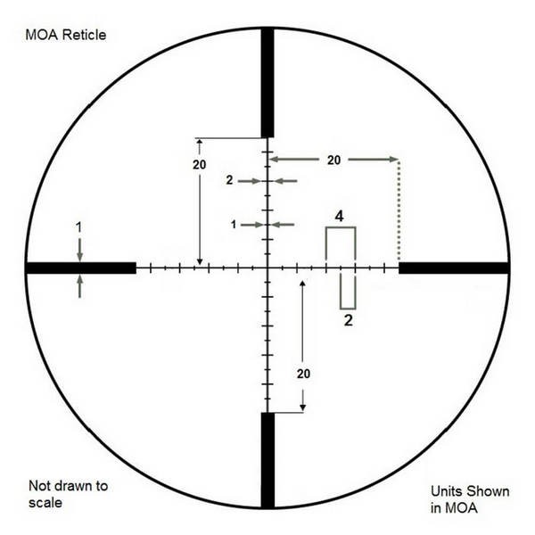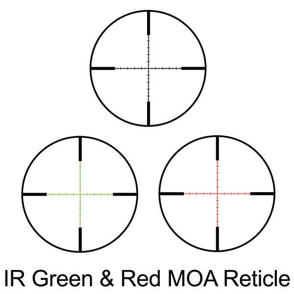 Дальномірна прицільна сітка IR MOA є похідною від популярної сітки Mil-Dot з тією різницею, що замість розмітки крапками використана розмітка ризиками, а всі розміри рисок і відстаней між ними дано не в кутових одиницях Mil, а в кутових одиницях MOA. Така розмітка є більш зручною та інтуїтивно зрозумілою, враховуючи, що поправки по вертикалі та горизонталі вводяться у кутових одиницях МОА. Завдяки далекомірній прицільній сітці IR MOA, відстань до мети можна визначити максимально точно, при цьому правильно прийняти поправку на вітер і врахувати траєкторію падіння кулі. Ця прицільна марка розміщена в другій фокальній площині і вірна при 10-кратному збільшенні. Сама сітка виконана методом гравіювання на склі, завдяки чому без проблем протистоїть найсерйознішій віддачі.