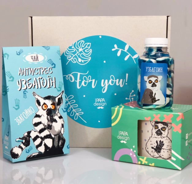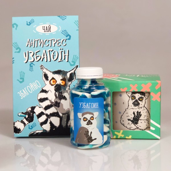 ● Потрібно з чого цей чай пити. Як добре, що ми подбали і про це. Лови круту чашку зі смішним лемуром.