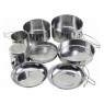 Набір посуду Highlander Peak Weekender Cookware Kit - недорогий похідний набір з нержавіючої сталі, де є весь необхідний посуд для приготування та їди в поході. Такий посуд не поб'ється, не заіржавіє і точно відмиється без проблем. Набір складається з восьми предметів та розрахований на двох осіб. Дуже зручно те, що практично весь посуд з набору компактно вміщується один в одного, заощаджуючи місце при зберіганні, і укладається в чохол, щоб дуже зручно при транспортуванні.