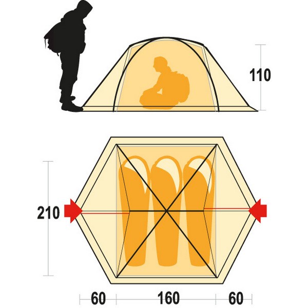 Розкладні склопластикові дуги - 3 шт . на блискавці, з ручкою та компресійними стяжками на фастексах: 1 шт Особливості експлуатації та догляду для продовження терміну служби: По можливості не рекомендується складати та упаковувати намет, якщо він мокрий. Якщо немає можливості повністю просушити намет відразу, необхідно це зробити вдома. Після повного просушування перед упаковкою необхідно добре струсити намет, витрусити всі зсередини та очистити зовнішню поверхню. Не допускається використання бензину або інших хімічних розчинників для очищення плям. Використовуйте лише м'яке мило, воду та м'яку щітку або губку.