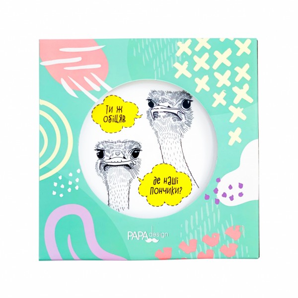 Ти відповідальна людина, яка виконує всі свої обіцянки своєчасно? Тоді тобі терміново треба нагодувати страусів, яким ти обіцяв запашні пончики. Швидше тисни на кнопку "в кошик" і отримую круту тарілку із кумедним малюнком.