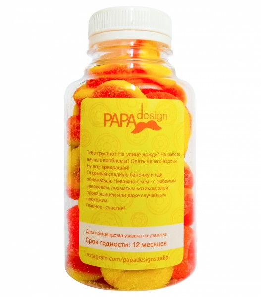 Тобі сумно? На вулиці дощ? На роботі є вічні проблеми? Знову нема чого одягти? Ну, все, припиняй! Відкривай солодку баночку та йди обійматись. Не має значення з ким — з коханою людиною, кошлатим котиком, злою продавщицею або навіть випадковим перехожим. Головне – щастя.