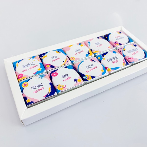 Цей крутий набір просто створений для справжніх герл бос, які щодня стикаються із труднощами та безапеляційно їх долають. У тебе може бути безліч справ, але знайди, будь ласка, трохи часу, щоб спробувати цей чарівний шоколадний набір. По-перше, це навіть крутіше "Милки", а по-друге, приділили увагу мотивуючим написам.