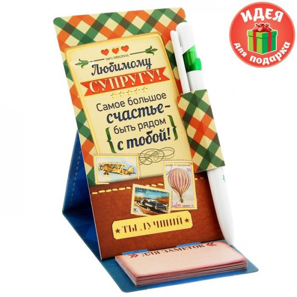 Подарунковий набір ручка на підставці з блоком "Улюбленому чоловікові!", 20 аркушів - чудовий знак уваги, яким Ви порадуєте близьку людину будь-якого дня, з приводу або просто так! Витончена ручка з гравіюванням та оригінальний блок для записів неодмінно здивують одержувача якістю, зручністю та практичністю, а завдяки незвичайній упаковці-листівці Ви зможете передати дорогій людині свої найтепліші почуття та щирі побажання.