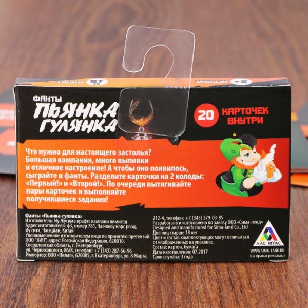 У розпорядженні учасників 2 колоди. Гравцям потрібно по черзі перевертати картки з обох колод, з'єднувати їх в один фант та виконувати завдання/