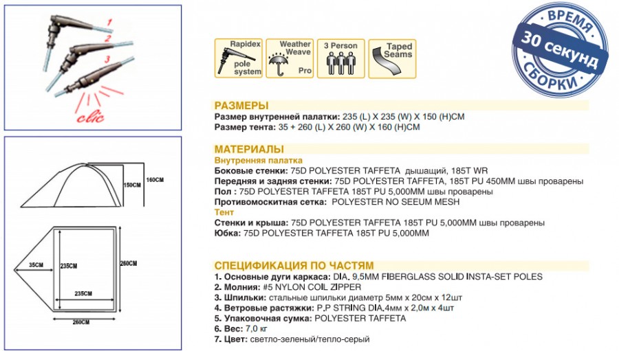 Характеристики товару Туристичний намет автомат Montblanc, World of Maverick