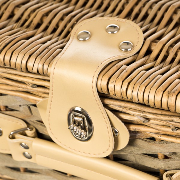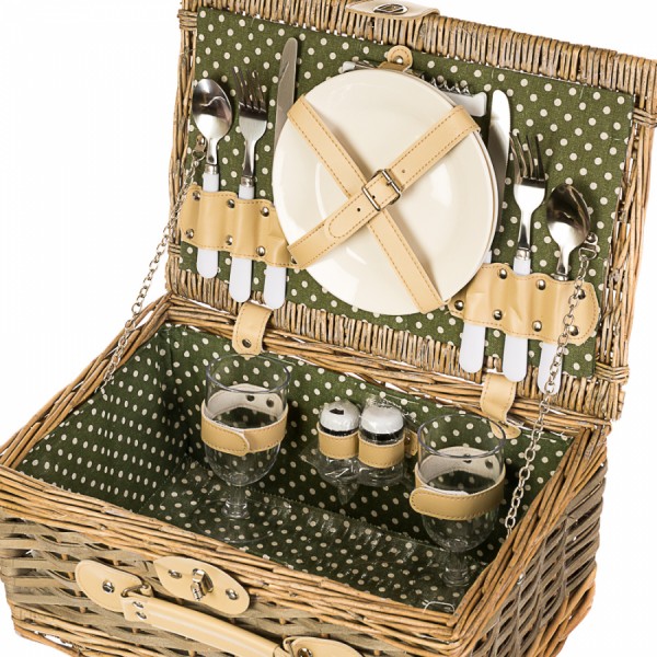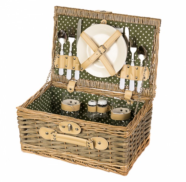 Зробіть свій відпочинок більш антуражним і природним, використовуючи плетений кошик з натуральної лози, ви ще більше долучаєтесь до природи, а завдяки тому, що не використовуються пластикові пакети, тим самим зберігається екологія. У набір входить: 2 вилки, 2 ножі, 2 ложки з нержавіючої сталі із пластиковою ручкою; 2 керамічні тарілки; 2 пластикові келихи для вина; 1 пластиковий набір із сільничкою/перечницею; 1 штопор.