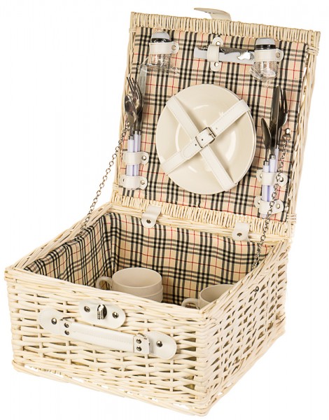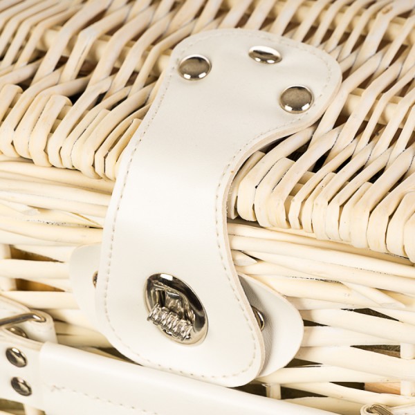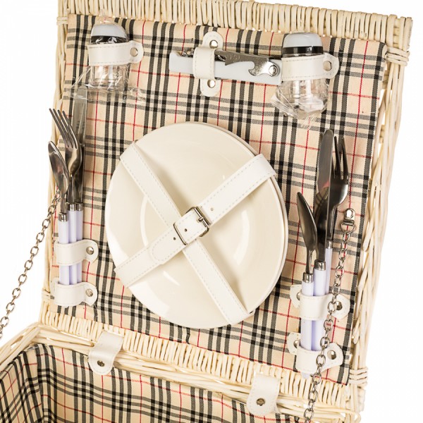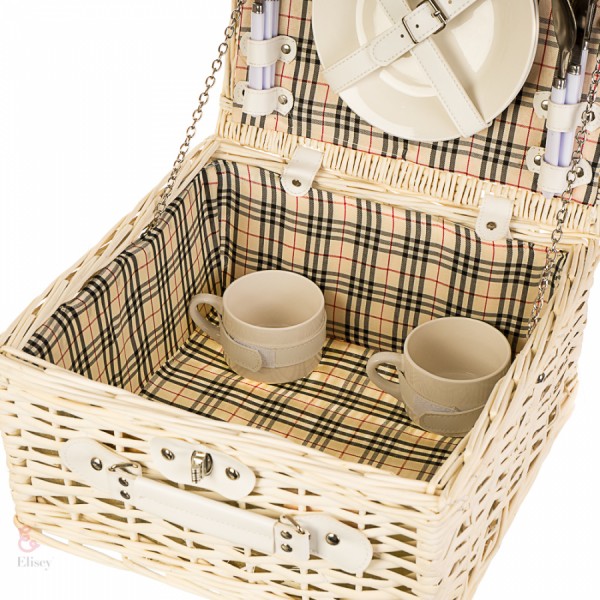 Компактний кошик з натурального, органічного матеріалу - лози, такий кошик можна використовувати як за прямим призначенням - для пікніків та відпочинку на природі, так і для фото сесій. А тепер – відпочивайте гарно! У комплект входить: 2 вилки, 2 ножі, 2 ложки з нержавіючої сталі із пластиковою ручкою; 2 керамічні тарілки; 2 керамічні кавові кружки; 1 пластиковий набір із сільничкою/перечницею; 1 штопор.