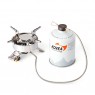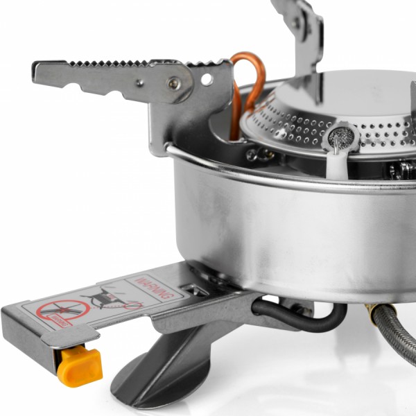 Потужний і практичний у використанні газовий пальник, оснащений п'єзопідпалом і спеціальним шлангом, ідеальний для роботи при мінусовій температурі. При низькій температурі газ у балоні починає замерзати. Довгий шланг дає можливість розмістити ємність з паливом в теплі (наприклад, прилаштувати балон на кришці каструлі або сховати його в спальному мішку). Завдяки системі попереднього підігріву газу та тепловідбиваючому екрану пальник порадує безвідмовною роботою на холоді.