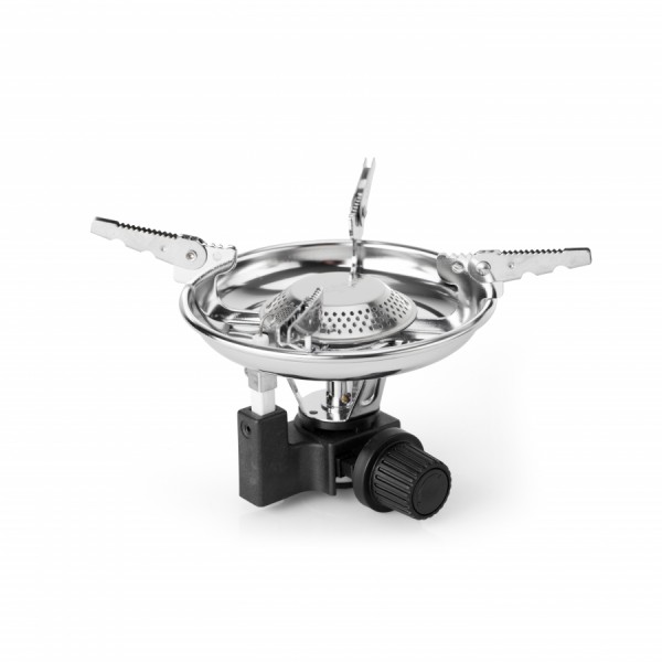 Головка збільшеного розміру дозволяє поступово «розсіювати» полум'я під посудом, зводячи ризик підгоряння їжі нанівець. Завдяки розкладним «лапкам» можна використовувати посуд більшого розміру, щоб приготувати обід на кілька осіб. Спеціальний круглий екран відображає тепло на дно каструлі або сковороди (тим самим збільшуючи ККД) і дозволяє економити паливо. Працює газовий пальник від різьбового балона з ізобутаном.