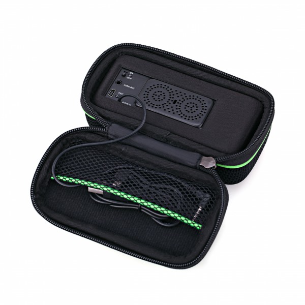 Завдяки спеціальним петлям із міцного нейлонового шнура їх можна повісити на рюкзак, прикріпити до велосипеда або зачепити за ремінь. У колонки вбудований акумулятор, вони не витрачатимуть енергію вашого Mp-3 плеєра або смартфона. Дерев'яний корпус та технологія Bass Booster забезпечують відмінну якість звуку.