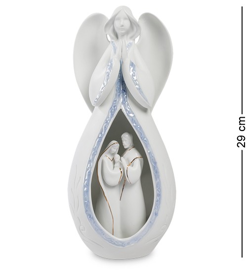 Молода сім'я з маленькою дитиною – найщасливіші люди у світі. Ніжна мати, дбайливий батько, уваги якого вистачить і на дружину, і на дитину. Спокій цієї сім'ї оберігає ангел-охоронець, який оточив їх своєю турботою і прикриває він усіх можливих бід і негараздів. Він склав руки в молитві – і вона обов'язково досягне мети: майбутнє молодої сім'ї – довге і світле. Такий подарунок – це побажання щастя у ній. Але при цьому скульптура має ще один сенс: вона є світильником, який служить зручним нічником. Ніби ангел не лише молитвою, а й світлом осяює долю сім'ї, ні на мить не залишаючи підопічних без своєї уваги – і вдень, і вночі.