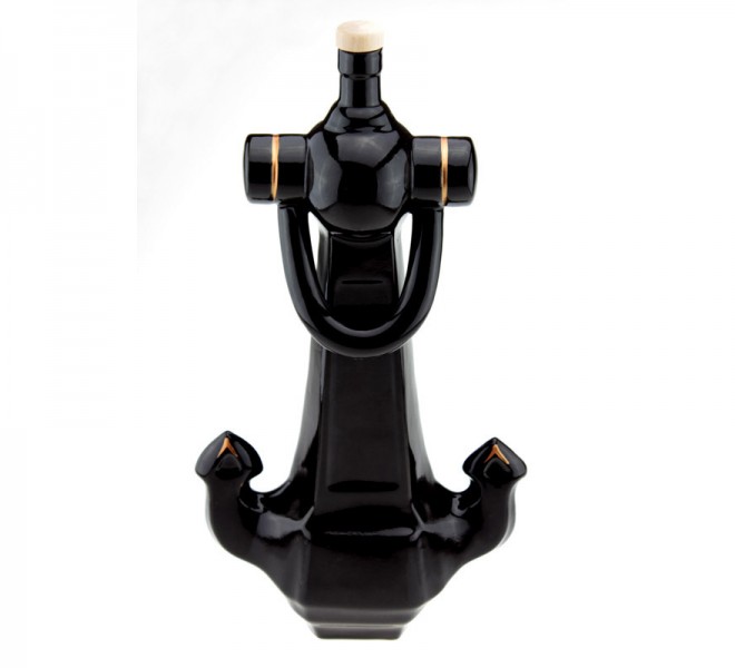 Великий подарунковий штоф – півтора літри – у вигляді якоря! Виглядає дуже натурально та презентабельно. Також у комплекті – 6 чарок з морським орнаментом.