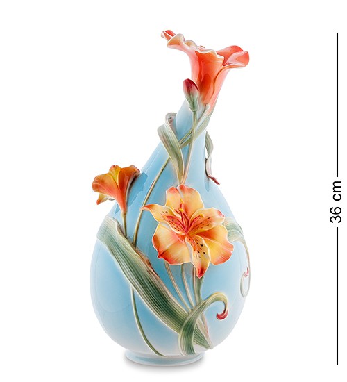 Порцеляна ніжного блакитного відтінку, на якому «розквітає» чудова лілія. Стебла квітки обвивають шийку вази, що розпускається бутоном тигрової лілії. Квіти розфарбовані вмілою рукою майстрів своєї справи, завдяки м'яким переходам фарб і увазі до деталей вони виглядають живими.
