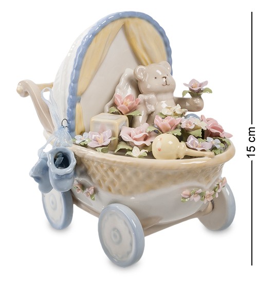 Маленька коляска виконана у старовинному стилі. Плетений кошик на коліщатках, точена дерев'яна ручка. Але не для справжньої дитини вона призначена, а для ляльки, от і сама вона тут сидить: симпатичне плюшеве ведмежа. Тут ще кілька іграшок валяється, і все посипано квітами. Маленька дівчинка тренується бути мамою для своїх іграшок і намагається нічого не забути: от і черевики до коляски прив'язала: раптом ведмежатку ніжками погуляти захочеться. Ну, а багато квітів зайвими ніколи не будуть: у малюка явно виховується гарний смак та любов до всього гарного. Стане в нагоді в житті все це обов'язково!