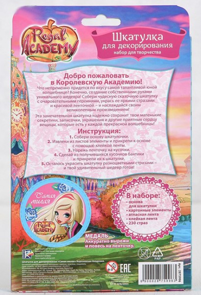 Характеристики товару Скринька для декорування " Самая милая ", Королівська Академія + елементи декору,стрази