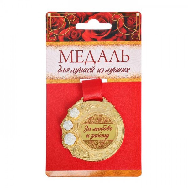 Медаль жіноча з акриловими квітами " За любовь и заботу "