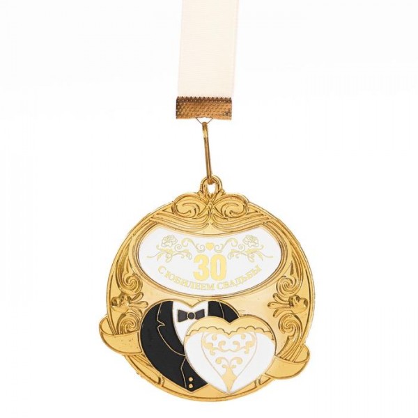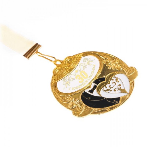 Можно подарить на годовщину свадьбы 30 лет жемчуг, но если не позволяет бюджет, подарите медаль с гравировкой с поздравлениями, именами и датой свадьбы.