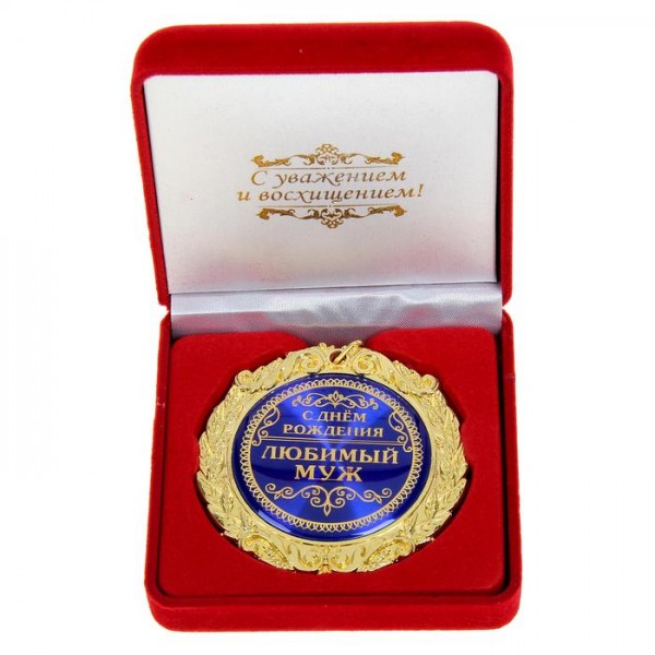 Медаль у оксамитовій коробці З Днем народження, коханий чоловік.