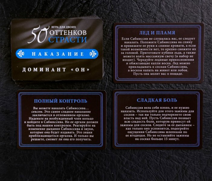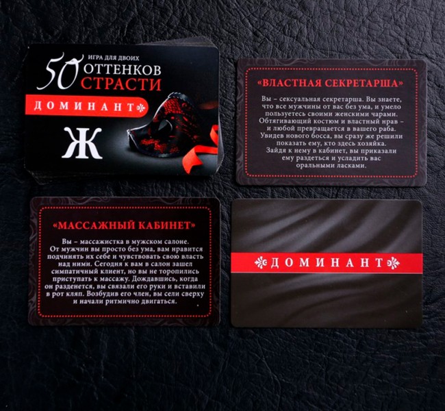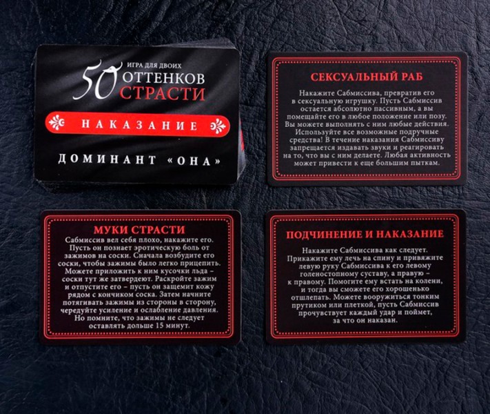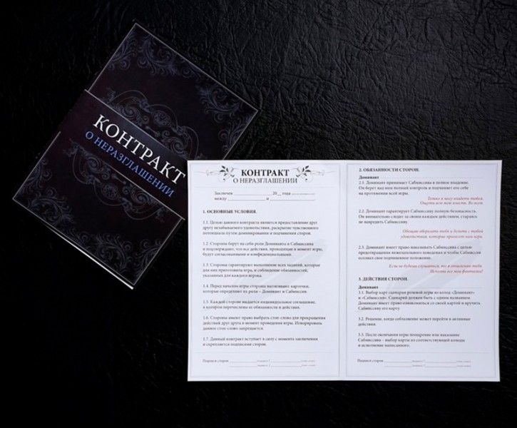 Для початку розподіліть ролі та вручіть один одному за контрактом. Хтось із вас буде домінантом, а інший – сабмісивом. Розіграйте один із жарких рольових сценаріїв. А після вирішите, заохочення чи покарання заслуговує на сабмісив. Витягуйте картки з відповідних колод та втілюйте усі фантазії в життя! А випробувати найвищу насолоду від гри вам допоможуть гарячі аксесуари.