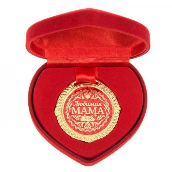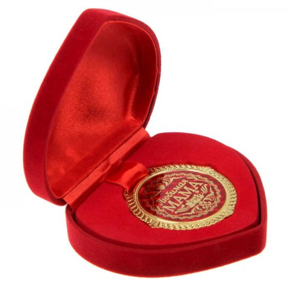 Фігурний виріб виконаний із металу золотого кольору. На звороті написані теплі слова. А щоб ви одразу змогли надіти медаль на отримувача, ми додали в комплект стрічку. Виріб подається в урочистій червоній коробочці у формі серця.