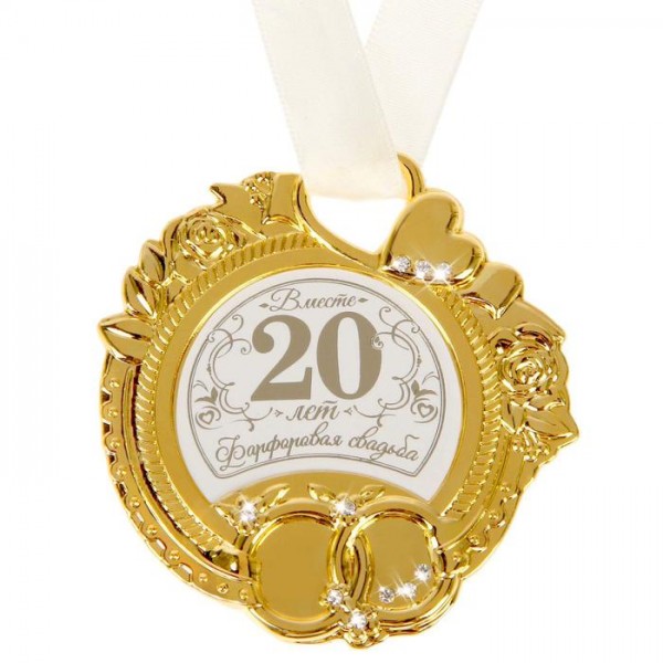 Медаль свадебная на открытке Фарфоровая свадьба.