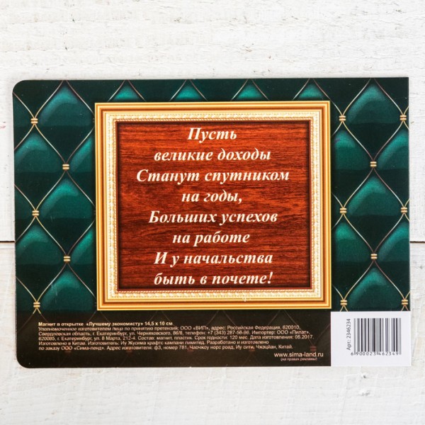 Відгуки до Магніт у листівці " Лучшему экономисту "