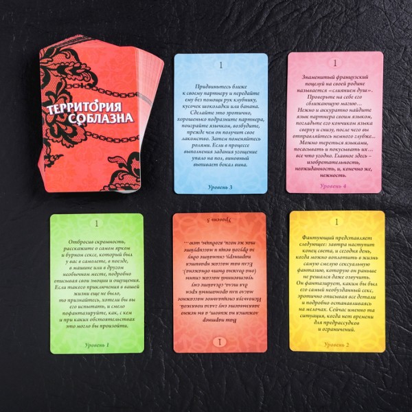 Все дуже просто! У грі 5 рівнів: починайте з карток першого рівня, а потім по черзі витягуйте по одній, зачитуйте завдання та виконуйте його. Коли колода закінчується, переходимо до другого рівня, формуємо нову колоду і так до кінця гри.