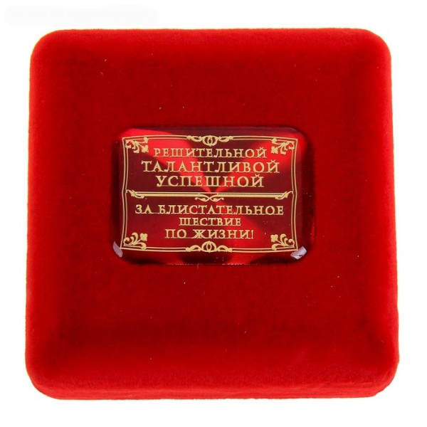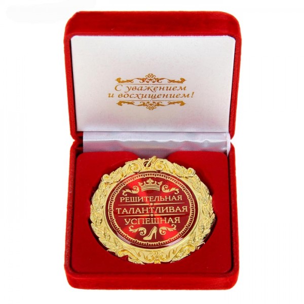 Створено формулу ідеального поздоровлення: класичну форму та святковий зміст. Саме такою є медаль у оксамитовій коробці "Рішуча, талановита, успішна". Це чудова нагорода для найдостойніших представників свого часу. Ексклюзивний сувенір стане гідною окрасою вечора та допоможе створити незабутню церемонію привітання.