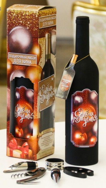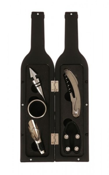 Оригінальний винний набір у футлярі пляшка однозначно буде гідно оцінений. Незвичайна форма та корисне наповнення порадують любителів вин. Такий набір буде не лише символічним красивим подарунком, а й зможе повноцінно виконувати свої функції.