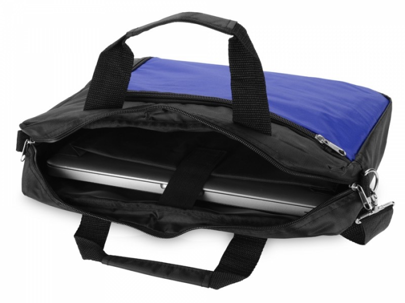 Сумка Quick призначена для зберігання та транспортування ноутбука та документів. Обидва відділення застібаються на блискавку. Яскрава кольорова вставка надає цій сумці святкового вигляду. Плечовий ремінь 1,3 м.