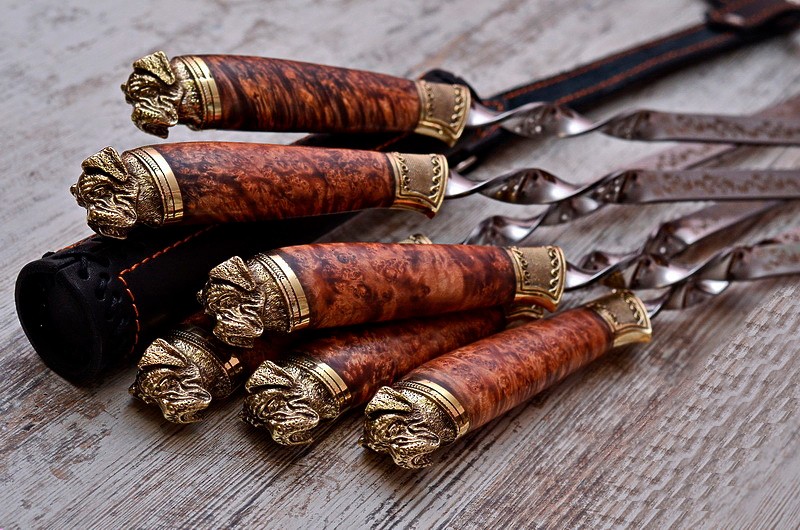 - Рукоять: кап клёна, пропитана тиковым маслом