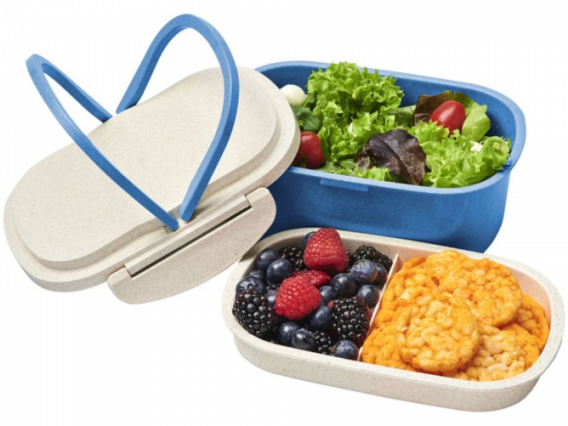Ланчбокс – чудовий подарунок для поціновувачів незвичайних та корисних сувенірів. Його головні особливості – контрастний дизайн та екологічний матеріал. У моделі є зручні ручки для перенесення. Ланчбокс на 50% виконаний із пшеничного солом'яного волокна і на 50% – із харчового пластику.
