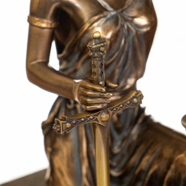 Незвичайна статуетка середніх розмірів чудово впишеться в інтер'єр робочого кабінету, юриста, адвоката, прокурора чи судді. Матеріал виготовлення-полістоун, що позитивно впливає на якість та зовнішній вигляд.
