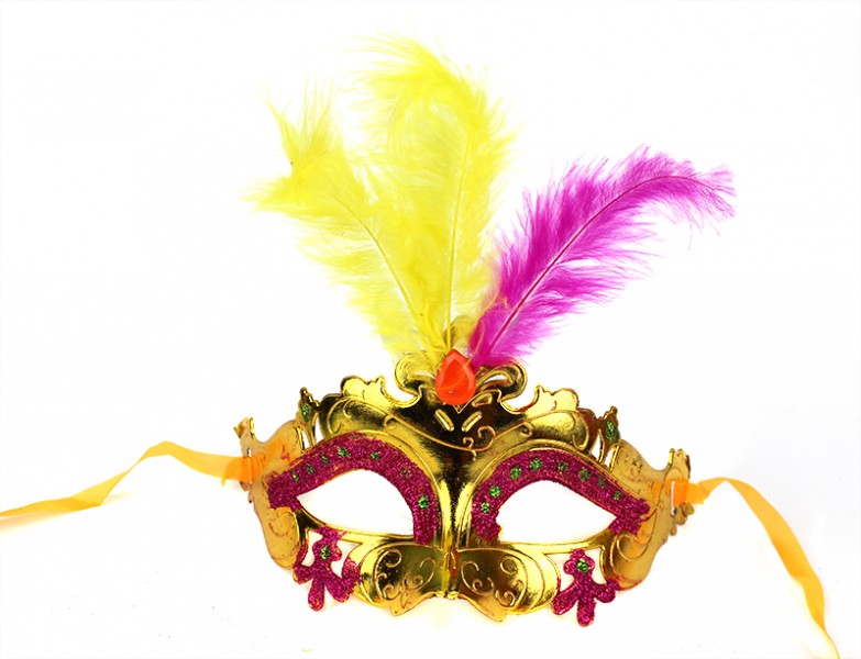 Характеристики товару Маска пластикова на завязках із пірям жовта