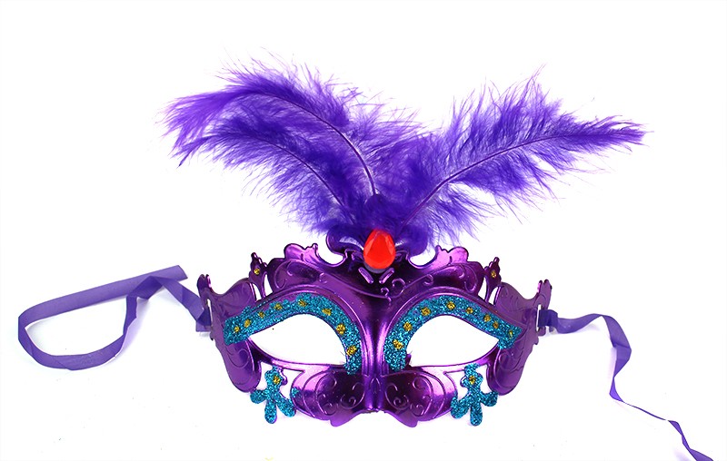 Характеристики товару Маска пластикова на завязках з фіолетовим пірям