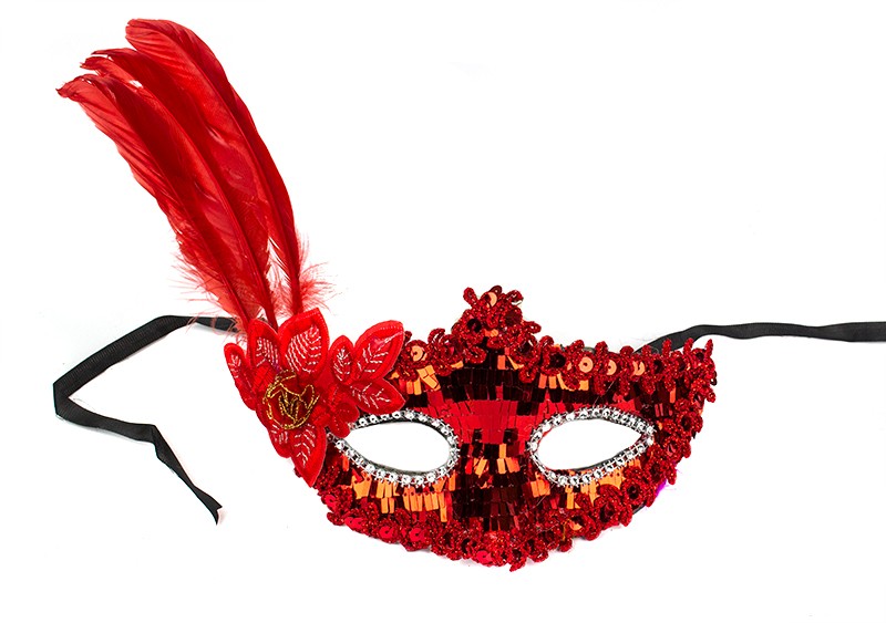 Характеристики товару Маска паєтки з пером і квіткою червона