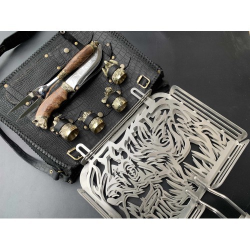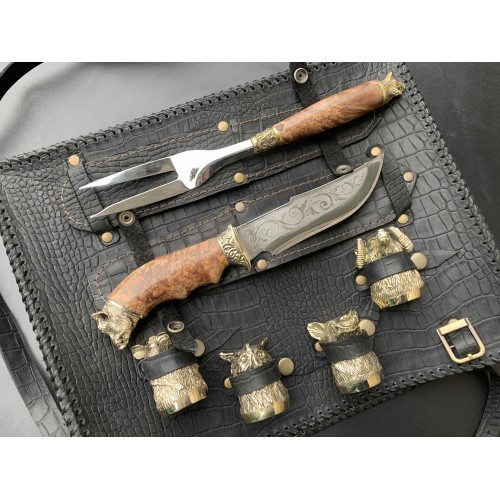 • Наявність мисливського ножа, зручної вилки та бронзових чарок