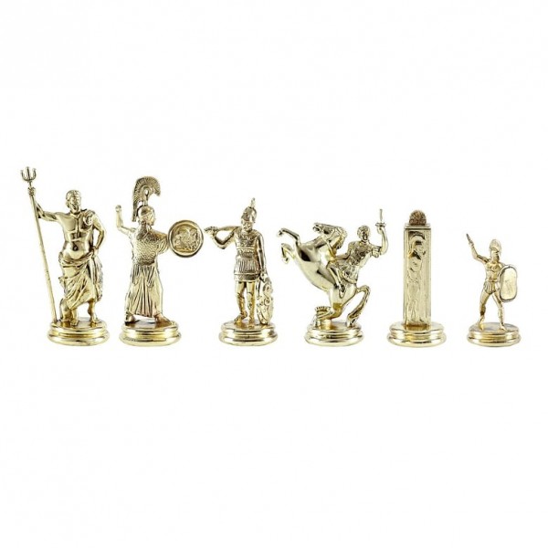 Стилізовані під грецьку міфологію шахові постаті з латуні.