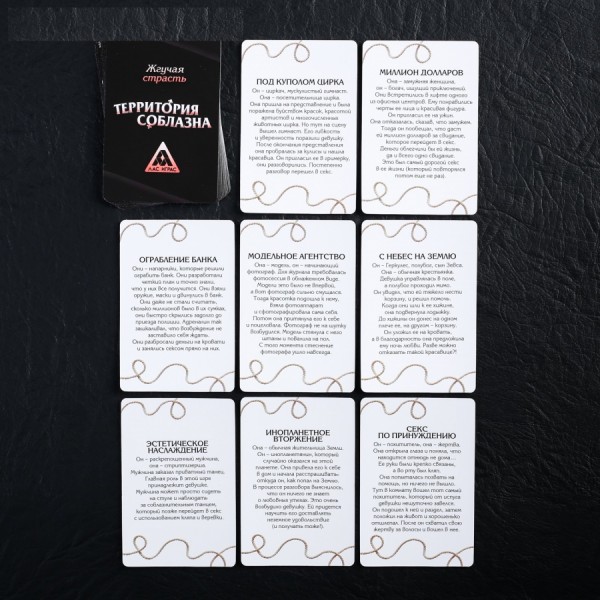 Еротична гра Гаряча пристрасть в якій на вас чекає 20 хвилюючих сценаріїв, кожен з яких здатний принести неймовірне задоволення. А пікантний реквізит – мотузка та кляп – стане чудовим доповненням! У наборі: 20 карт з рольовими іграми, кляп, мотузку, правила гри.